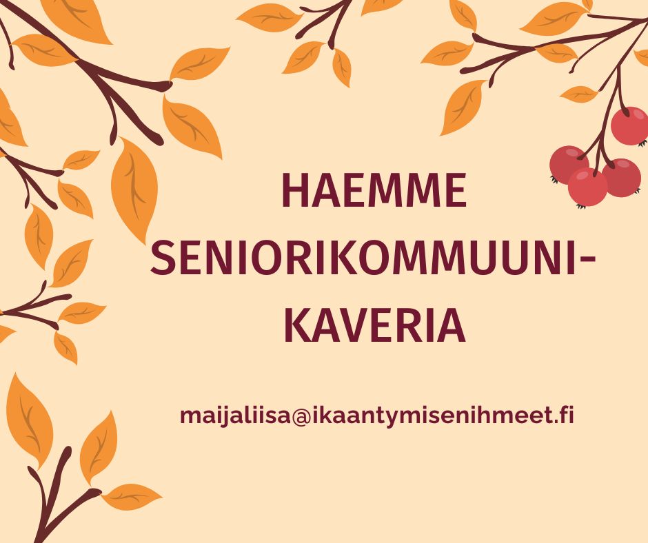 Olemme kaksi seitsemänkymppistä naista, jotka etsivät kolmatta jäsentä yhteisölliseen asumiseen.