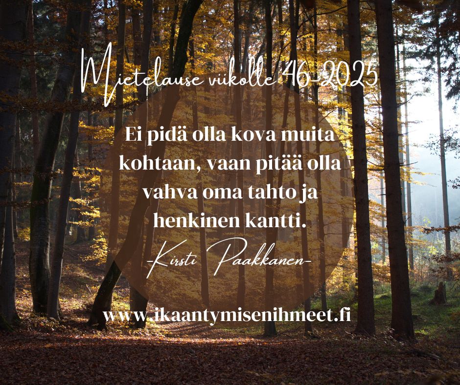 Ei pidä olla kova muita kohtaan, vaan pitää olla vahva oma tahto ja henkinen kantti. -Kirsti Paakkanen-