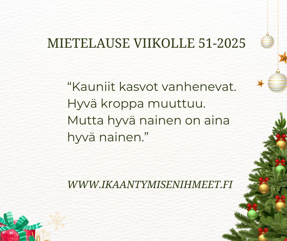 "Kauniit kasvot vanhenevat. Hyvä kroppa muuttuu. Mutta hyvä nainen on aina hyvä nainen."